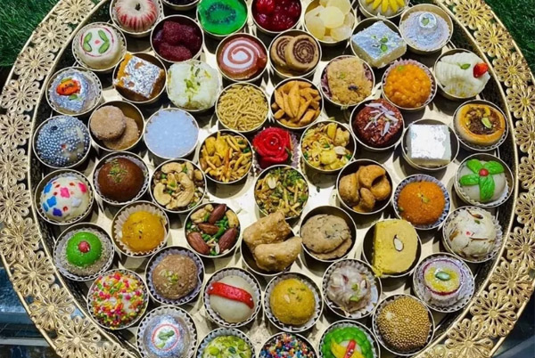 Traditional 56 bhog offering prepared as per temple customs.