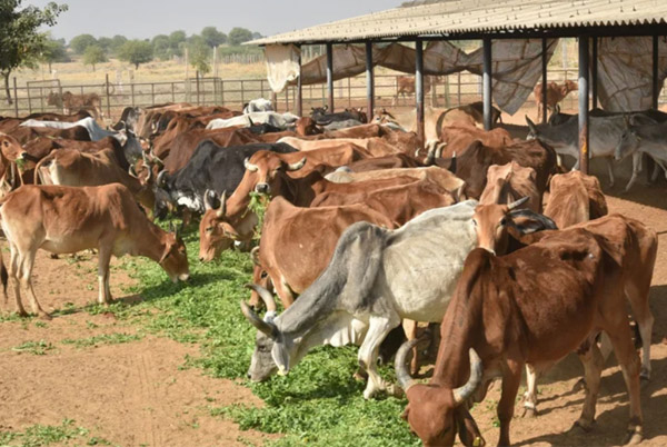Gau seva arrangement as a sacred and pious offering.
