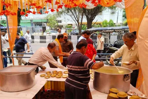 Community bhandara seva organized with proper arrangements.